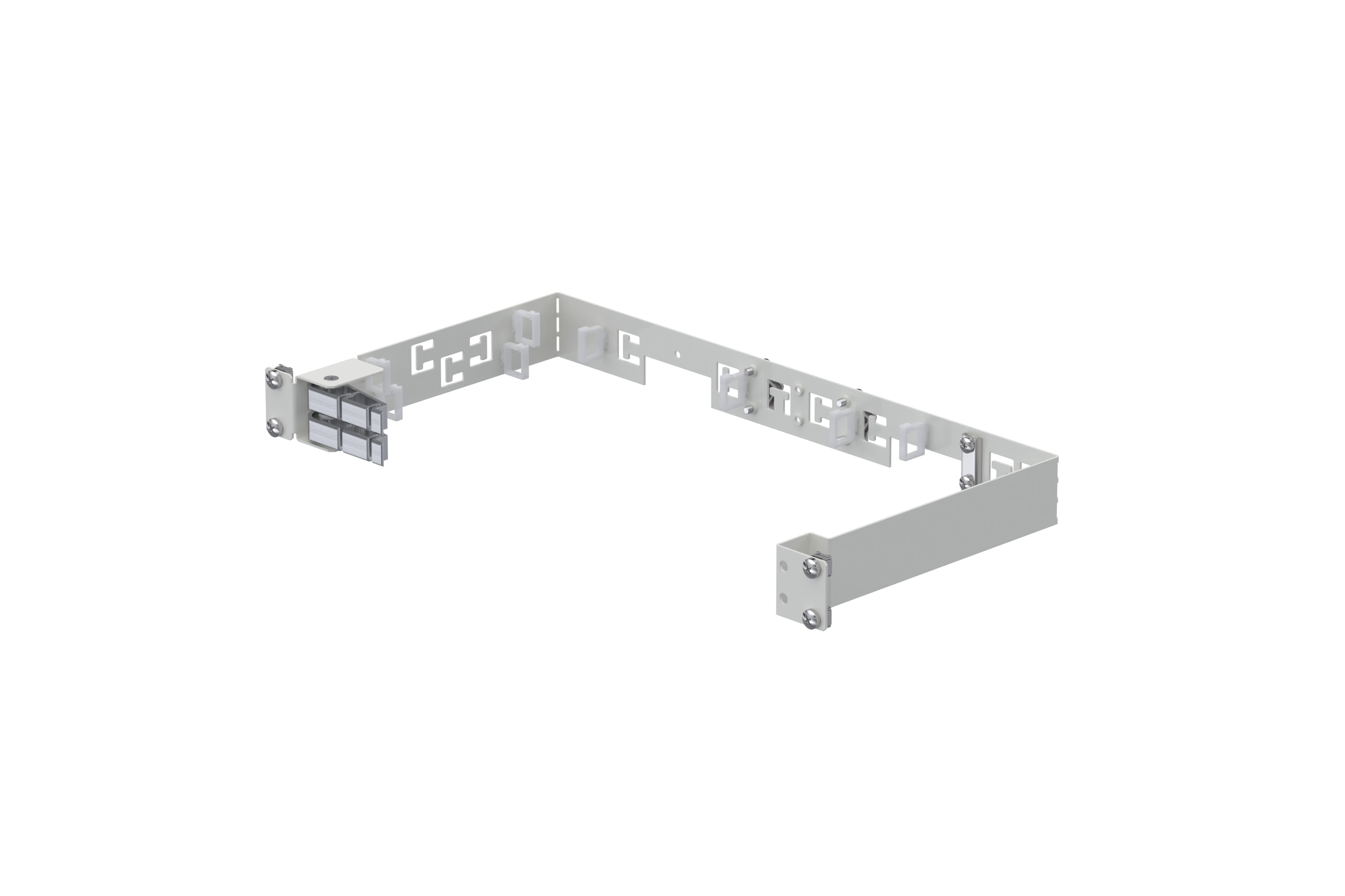 19″ splice module frame with holders for up to 2 splice cassettes or one termination cassette.