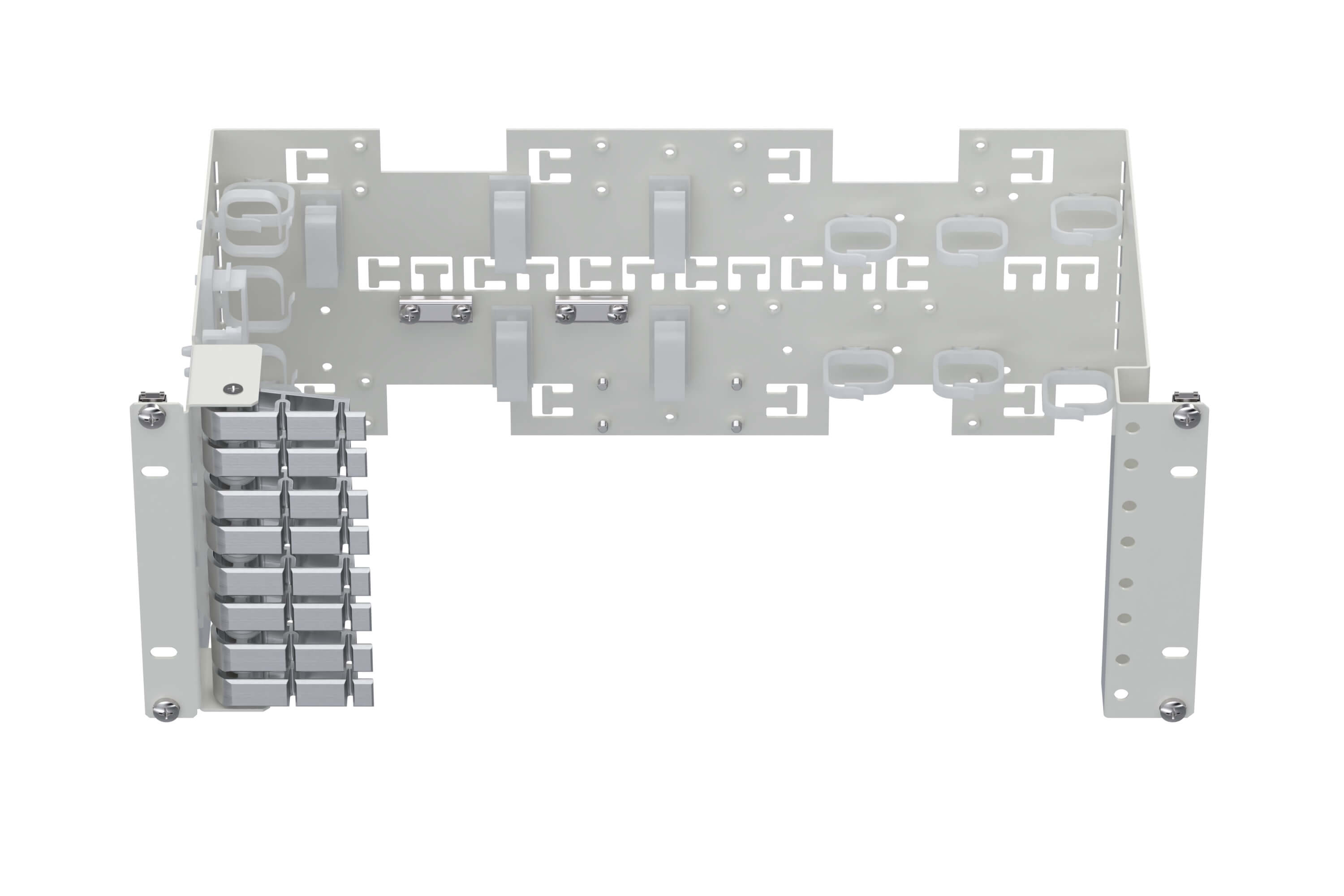 19″ splice module frame, for up to 8 splice cassettes or 4 termination cassettes.