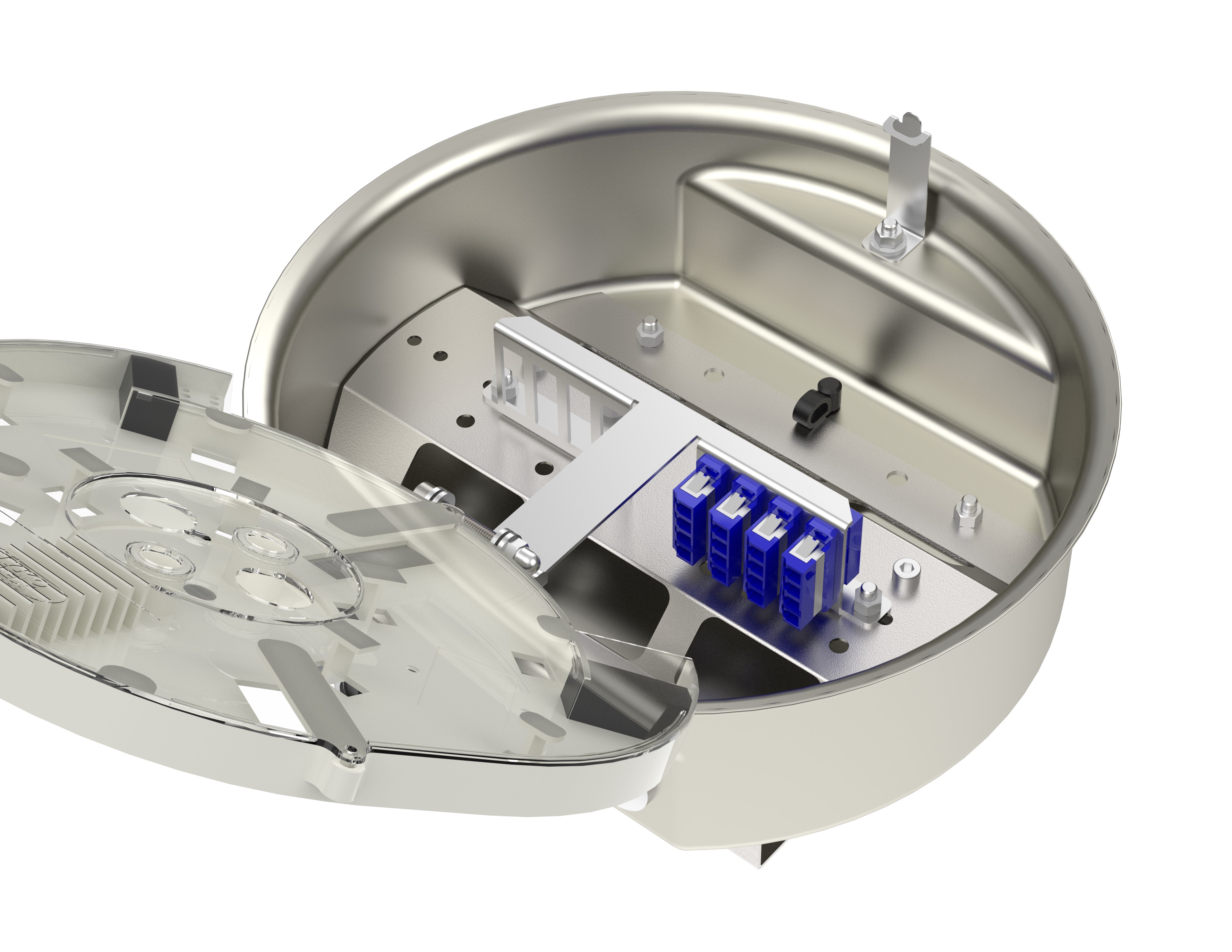 • Kontaktfält för 8xLCQ där 4 mellanstycken samt 16x Pigtail LC ingår vid leverans.
